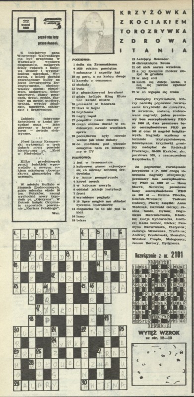 Archiwum / Krzyżówka z kociakiem nr 2102 (38/1985) 43/55 Podziel się Tytuł Krzyżówka z kociakiem Rubryka Krzyżówka z kociakiem Artykuł z numeru 2102 (38/1985) Data wydania 22 września 1985