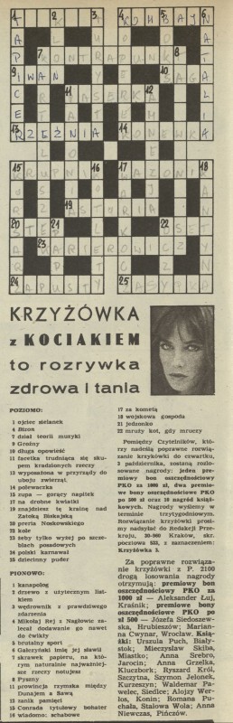 Archiwum / Krzyżówka z kociakiem nr 2103 (39/1985) 44/55 Podziel się Tytuł Krzyżówka z kociakiem Rubryka Krzyżówka z kociakiem Artykuł z numeru 2103 (39/1985) Data wydania 29 września 1985 Tagi zagadka zgadywanka łamigłówka