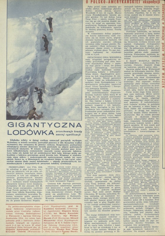 Archiwum / Artykuł nr 1505 (06/1974) 62737/123969 Podziel się Tytuł Gigantyczna lodówka Autor Wiesław Maczek Kategoria Artykuł Artykuł z numeru 1505 (6/1974) Data wydania 10 lutego 1974 Tagi lodowiec Himalaje