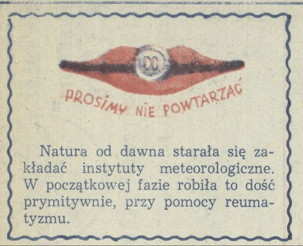 Archiwum / Prosimy nie powtarzać nr 1505 (06/1974) 61228/123969 Podziel się Tytuł Prosimy nie powtarzać Rubryka Prosimy nie powtarzać Artykuł z numeru 1505 (6/1974) Data wydania 10 lutego 1974
