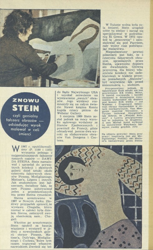 Archiwum / Artykuł nr 1506 (07/1974) 2/2 Podziel się Tytuł Znowu Stein Autor Ut Kategoria Artykuł Artykuł z numeru 1506 (7/1974) Data wydania 17 lutego 1974 Tagi sztuka