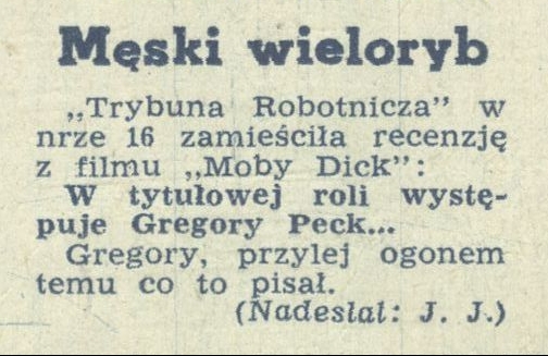 Archiwum / Rozmaitości [old] nr 1506 (07/1974) 49/394 Podziel się Tytuł Męski wieloryb Rubryka Rozmaitości [old] Artykuł z numeru 1506 (7/1974) Data wydania 17 lutego 1974