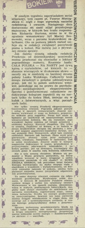 Archiwum / Felieton nr 1504 (05/1974) 62722/123969 Podziel się Tytuł Bokiem Autor Andrzej Warchał Kategoria Felieton Artykuł z numeru 1504 (5/1974) Data wydania 3 lutego 1974