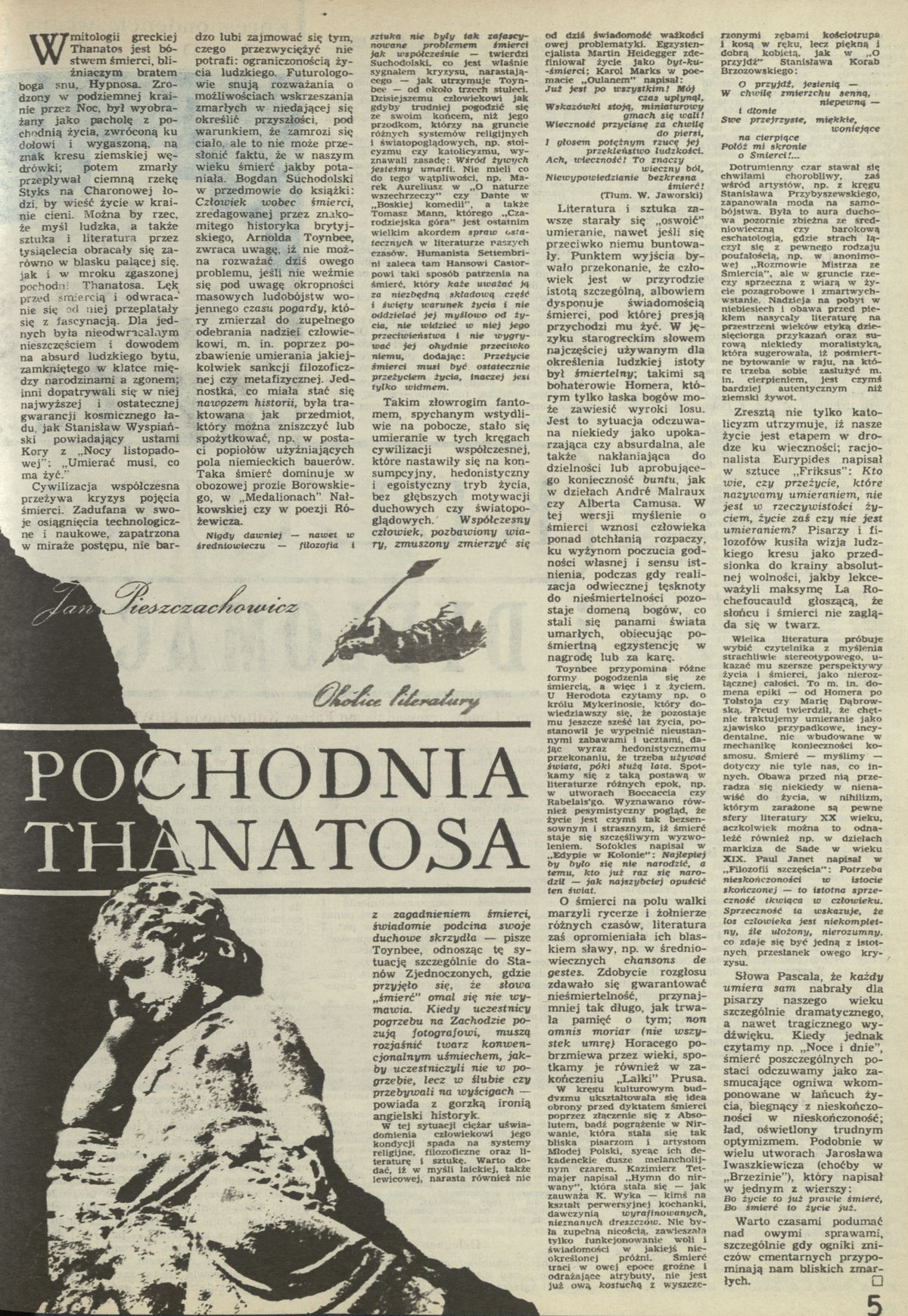 Archiwum / Artykuł nr 2108 (44/1985) 58/69 Podziel się Tytuł Pochodnia Thanatosa Autor Jan Pieszczachowicz Kategoria Artykuł Artykuł z numeru 2108 (44/1985) Data wydania 3 listopada 1985 Tagi mitologia Thanatos