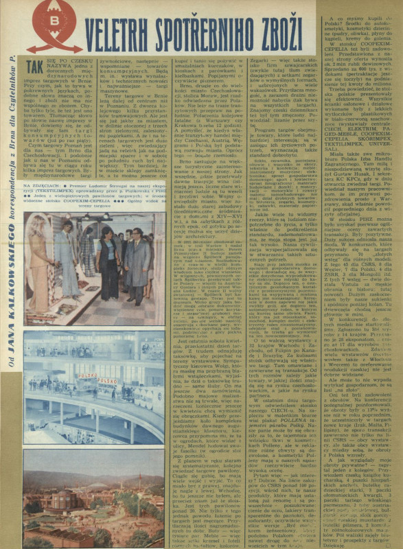 Archiwum / korespondencja własna "Przekroju" nr 1519 (20/1974) 319/626 Podziel się Tytuł Veletrh spotrebniho zbozi Autor Jan Kalkowski Rubryka korespondencja własna "Przekroju" Artykuł z numeru 1519 (20/1974) Data wydania 19 maja 1974 Tagi Brno Czechy podróż targi