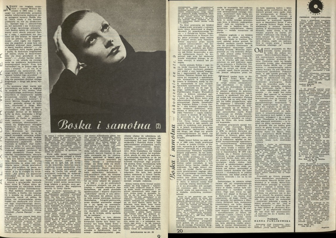 Archiwum / Artykuł nr 2105 (41/1985) 2/2 Podziel się Tytuł Boska i samotna Autor Hanna Pawlikowska Kategoria Artykuł Artykuł z numeru 2105 (41/1985) Data wydania 13 października 1985 Tagi Greta Garbo