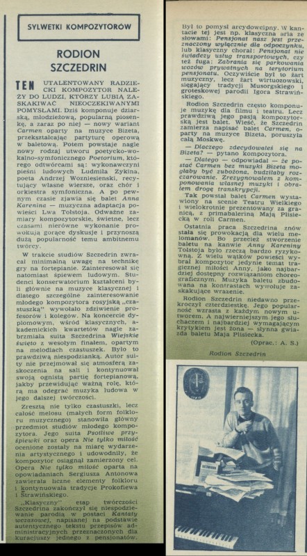 Archiwum / Kultura nr 1519 (20/1974) 3/5 Podziel się Tytuł Sylwetki kompozytorów. Rodion Szczedrin Kategoria Kultura Artykuł z numeru 1519 (20/1974) Data wydania 19 maja 1974 Tagi muzyka ZSRR kompozytor