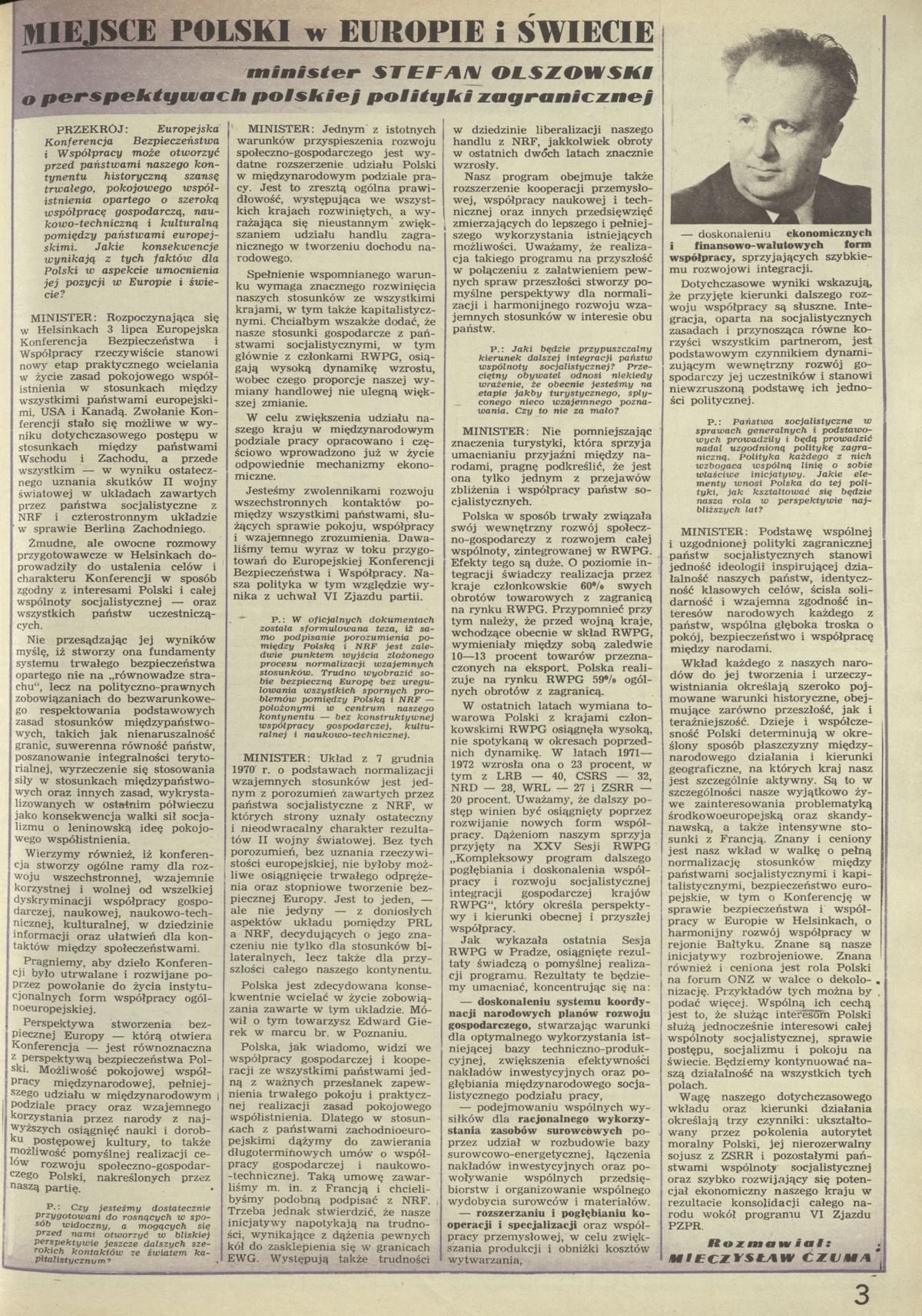 Archiwum / Wywiad nr 1474 (27/1973) 22/38 Podziel się Tytuł Miejsce Polski w Europie i Świecie Autor Mieczysław Czuma Kategoria Wywiad Artykuł z numeru 1474 (27/1973) Data wydania 8 lipca 1973 Tagi minister Stefan Olszowski wywiad polityka polityka zagraniczna Europa Świat