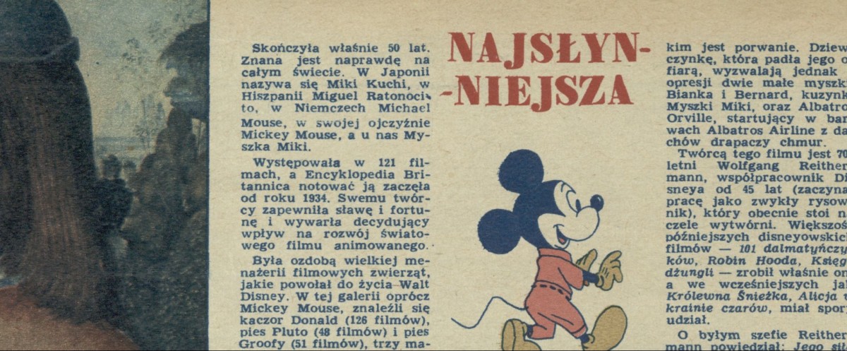 Archiwum / Różności nr 1720 (13/1978) 1/1 Podziel się Tytuł Najsłynniejsza z myszy Kategoria Różności Artykuł z numeru 1720 (13/1978) Data wydania 28 marca 1978 Tagi Myszka Miki Disney