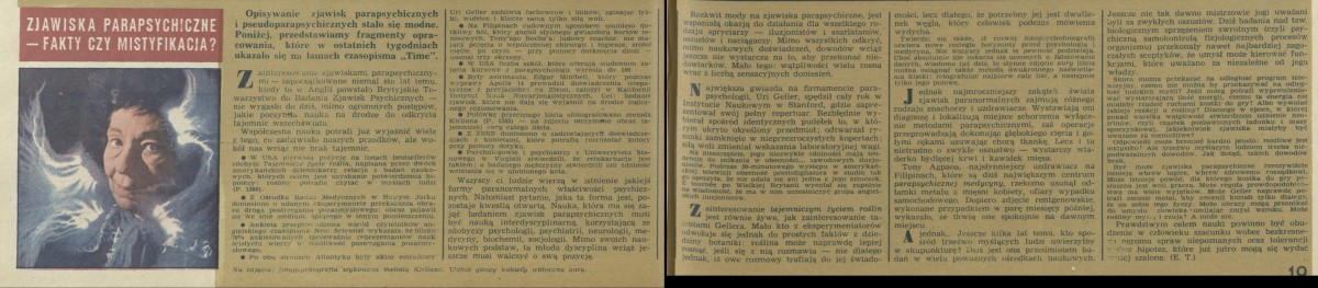 Archiwum / Artykuł nr 1511 (12/1974) 03/58 Podziel się Tytuł Zjawiska parapsychiczne - fakty czy mistyfikacja? Autor E. T. Kategoria Artykuł Artykuł z numeru 1511 (12/1974) Data wydania 24 marca 1974 Tagi zjawiska paranormalne psychologia