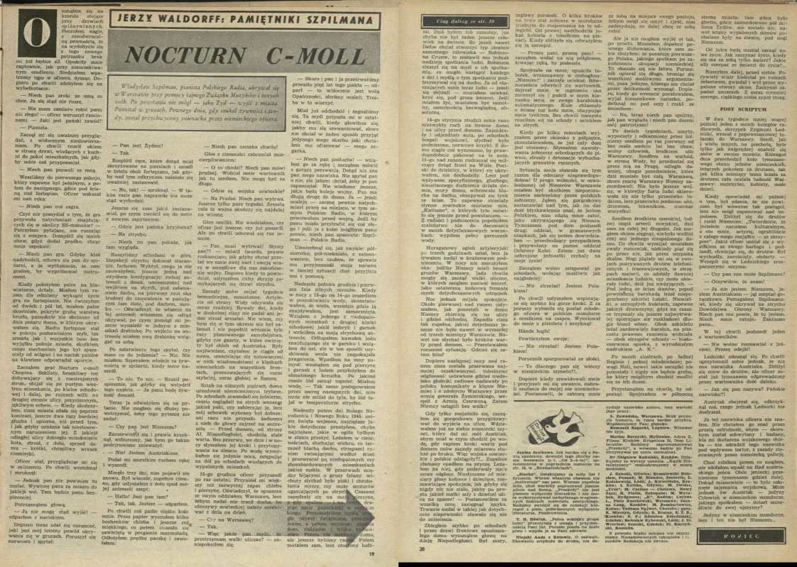 Archiwum / Dziennik nr 67 (29/1946) 50/4947 Podziel się Tytuł Pamiętniki Szpilmana Nocturn C-Moll. Autor Jerzy Waldorff Kategoria Dziennik Artykuł z numeru 67 (29/1946) Data wydania 21 lipca 1946