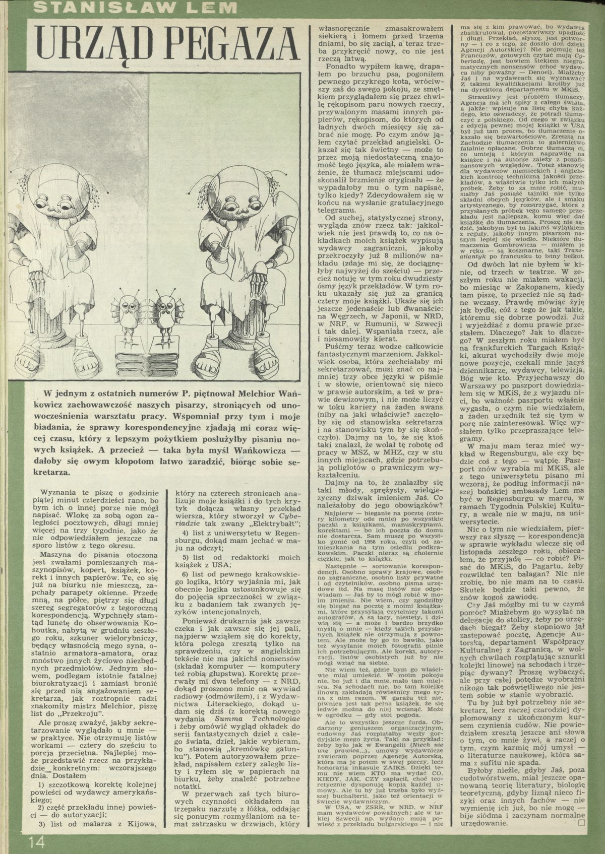 Archiwum / Opowiadanie nr 1514 (15/1974) 788/2813 Podziel się Tytuł Urząd pegaza Autor Stanisław Lem Kategoria Opowiadanie Artykuł z numeru 1514 (15/1974) Data wydania 14 kwietnia 1974