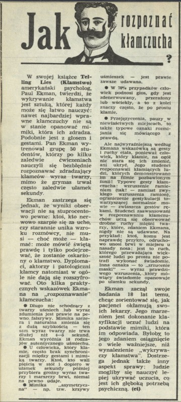 Archiwum / Opinie nr 2088 (24/1985) 87748/123969 Podziel się Tytuł Jak rozpoznać kłamczucha? Kategoria Opinie Artykuł z numeru 2088 (24/1985) Data wydania 16 czerwca 1986 Tagi ksiązka kłamstwo