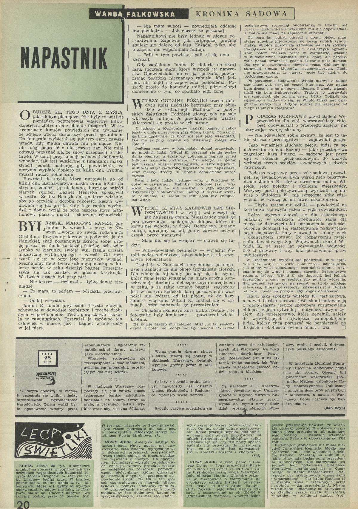 Archiwum / Kronika sądowa nr 1529 (30/1974) 756/881 Podziel się Tytuł Napastnik Autor Wanda Falkowska Rubryka Kronika sądowa Artykuł z numeru 1529 (30/1974) Data wydania 28 lipca 1974