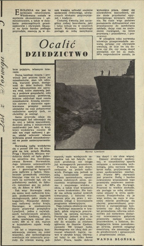 Archiwum / Korespondencja nr 2058 (47/1984) 186/2088 Podziel się Tytuł Ocalić dziedzictwo Autor Wanda Błońska Kategoria Korespondencja Artykuł z numeru 2058 (47/1984) Data wydania 18 listopada 1984 Tagi ekologia