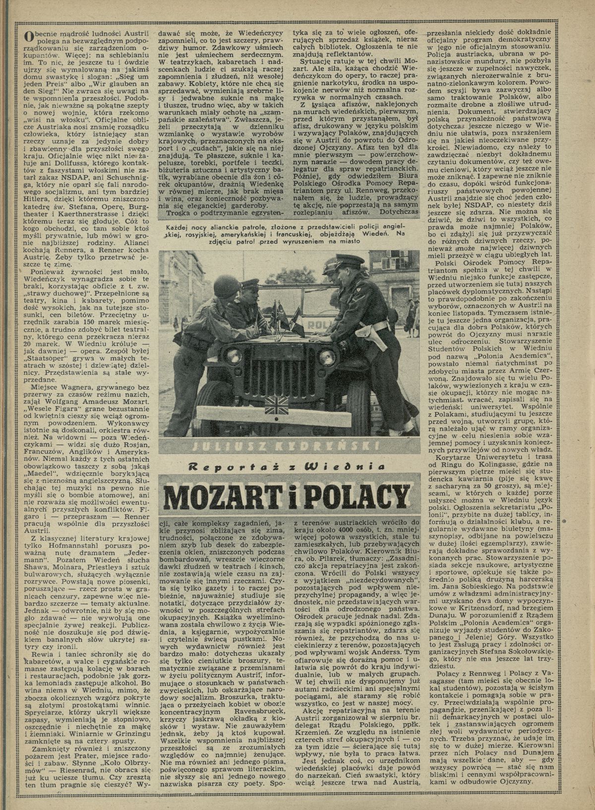Archiwum / Reportaż nr 35 (35/1945) 178/185 Podziel się Tytuł Mozart i Polacy Autor Juliusz Kydryński Kategoria Reportaż Artykuł z numeru 35 (35/1945) Data wydania 9 grudnia 1945 Tagi Wiedień korespondencja