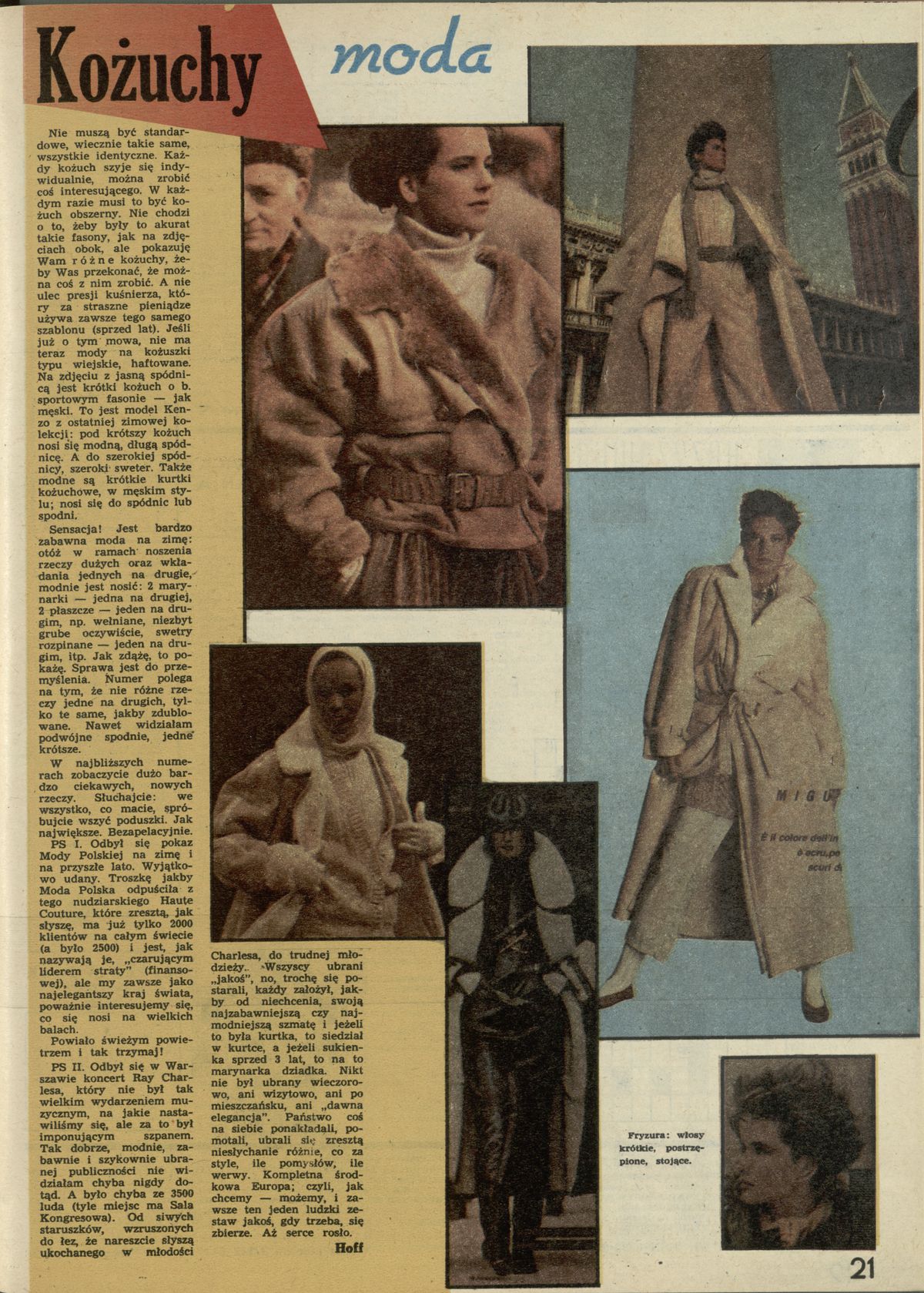 Archiwum / Moda nr 2058 (47/1984) 47/51 Podziel się Tytuł Moda Rubryka Moda Artykuł z numeru 2058 (47/1984) Data wydania 18 listopada 1984 Tagi kożuchy