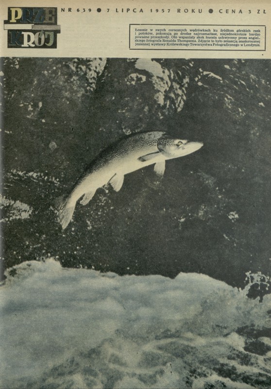 Archiwum / Okładki Przekroju nr 639 (28/1957) 25289/123969 Podziel się Tytuł Okładka Autor Ronald Thompson Rubryka Okładki Przekroju Artykuł z numeru 639 (28/1957) Data wydania 7 lipca 1957 Tagi łosoś ryby wędrówki łososi wystawa Królewskiego Towarzystwa Fotograficznego