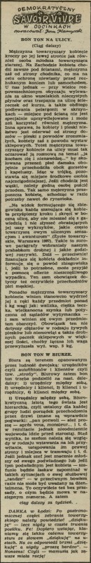 Archiwum / Demokratyczny savoir-vivre nr 121 (31/1947) 03/69 Podziel się Tytuł Bon ton na ulicy, Bon ton w biurze Autor Jan Kamyczek Rubryka Demokratyczny savoir-vivre Artykuł z numeru 121 (31/1947) Data wydania 3 sierpnia 1947 Tagi mężczyzna kobieta wychowanie towarzystwo ludzkość urzędnik klient