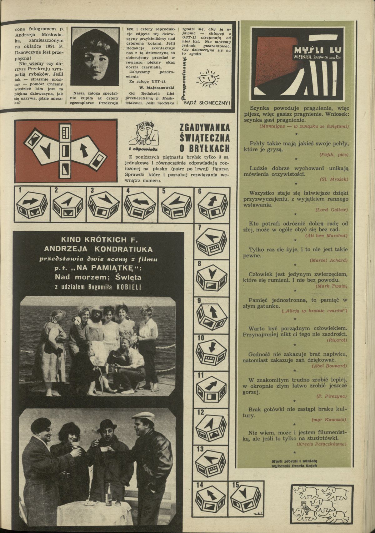 Archiwum / Zastanów się nr 1095-96 (14-15/1966) 300/301 Podziel się Tytuł Zgadywanka świąteczna o bryłkach Rubryka Zastanów się Artykuł z numeru 1095-96 (14/1966) Data wydania 4 kwietnia 1966