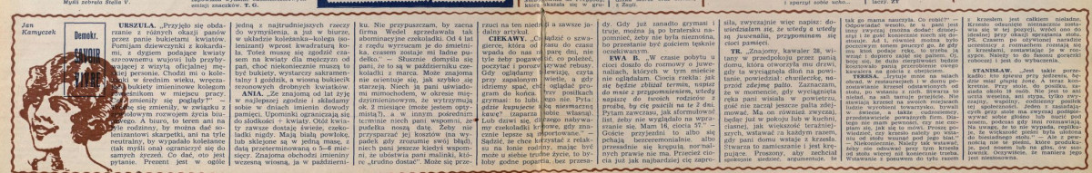 Archiwum / Demokratyczny savoir-vivre nr 1553 (02/1975) 14/15 Podziel się Tytuł Demokratyczny savoir vivre Autor Jan Kamyczek Rubryka Demokratyczny savoir-vivre Artykuł z numeru 1553 (2/1975) Data wydania 12 stycznia 1975 Tagi dobre wychowanie kultura obyczaje bon-ton
