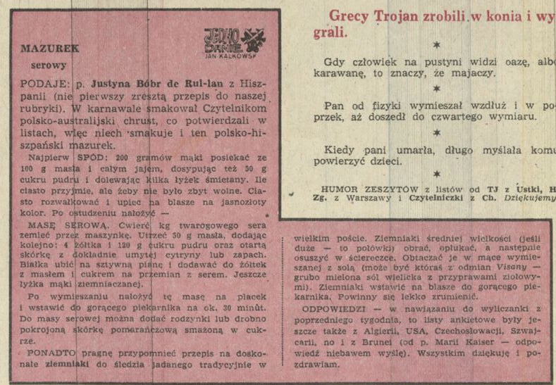 Archiwum / Jedno danie nr 2077 (13/1985) 62/158 Podziel się Tytuł Mazurek serowy Autor Jan Kalkowski Rubryka Jedno danie Artykuł z numeru 2077 (13/1985) Data wydania 31 marca 1985 Tagi kuchnia przepis kulinarny gastronomia jedno danie święta wielkanoc ciasta