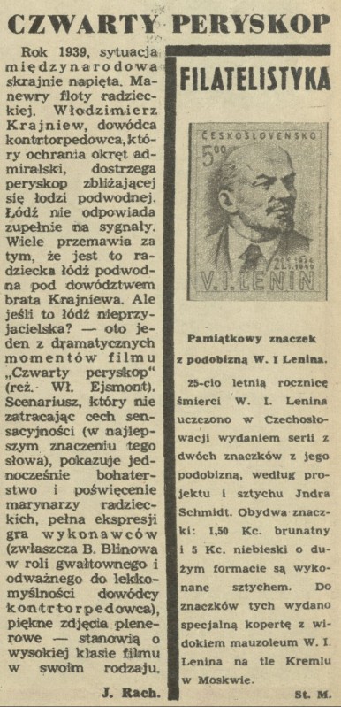 Archiwum / Film nr 212 (18/1949) 6483/123969 Podziel się Tytuł Czwarty peryskop Autor J. Rach Rubryka Film Artykuł z numeru 212 (18/1949) Data wydania 1 maja 1949 Tagi 1939 historia Europa ZSRR bohaterstwo poświęcenie marynarz dowódca