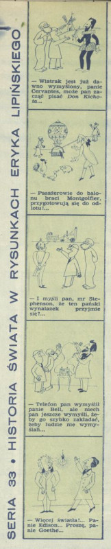 Archiwum / Historyjki obrazkowe nr 1517 (18/1974) 949/1919 Podziel się Tytuł Historia świata w rysunkach Eryka Lipińskiego Autor Eryk Lipiński Kategoria Historyjki obrazkowe Artykuł z numeru 1517 (18/1974) Data wydania 5 maja 1974 Tagi żart rysunkowy historia don kichot edison wynalazek