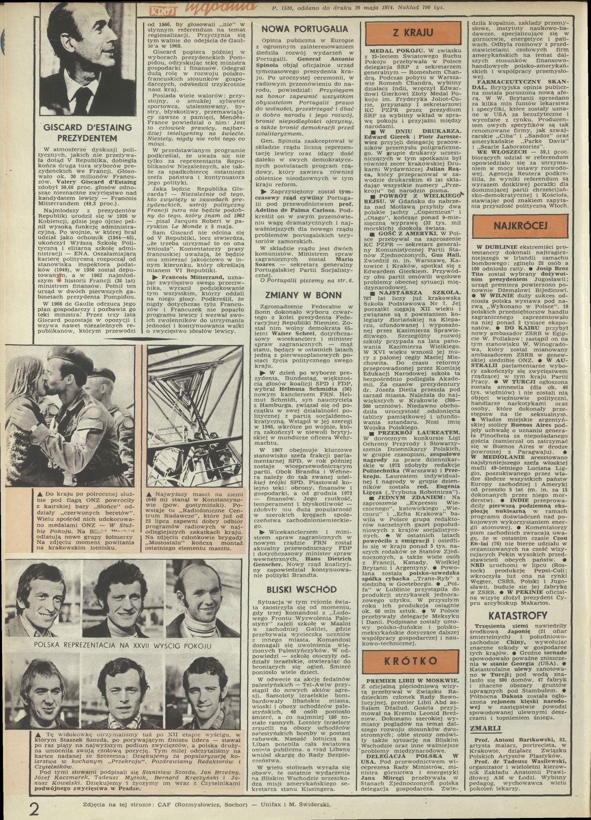 Archiwum / Przekrój tygodnia nr 1520 (21/1974) 16/28 Podziel się Tytuł Przekrój tygodnia Rubryka Przekrój tygodnia Artykuł z numeru 1520 (21/1974) Data wydania 26 maja 1974 Tagi Francja polityka