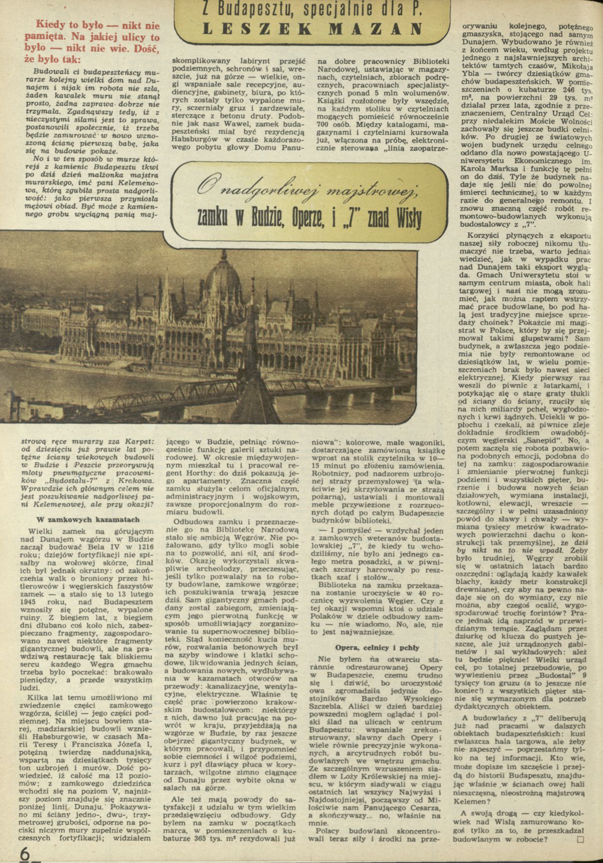 Archiwum / korespondencja własna "Przekroju" nr 2076 (12/1985) 30/42 Podziel się Tytuł O nadgorliwej majstrowej. zamku w Budzie, Operze i „7” znad Wisły Autor Leszek Mazan Rubryka korespondencja własna "Przekroju" Artykuł z numeru 2076 (12/1985) Data wydania 24 marca 1985 Tagi Budapeszt zamek