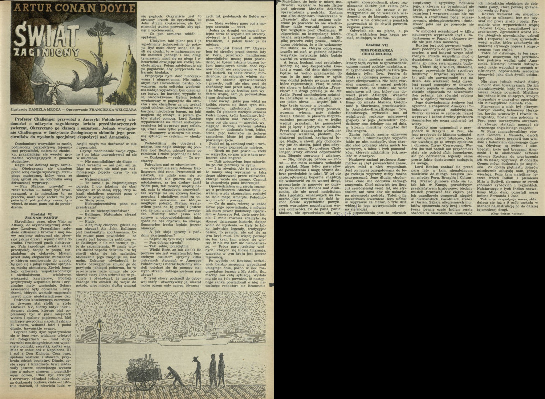 Archiwum / Proza nr 544 (37/1955) 21/40 Podziel się Tytuł Świat zaginiony (5) Autor Artur Conan Doyle Daniel Mróz Kategoria Proza Artykuł z numeru 544 (37/1955) Data wydania 11 września 1955 Tagi fragmenty powieści powieść przygodowa literatura fantastyczno-naukowa Welczar