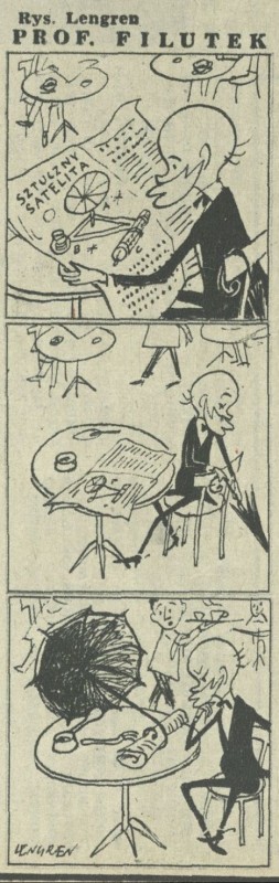 Archiwum / Profesor Filutek nr 544 (37/1955) 13/45 Podziel się Tytuł Prof. Filutek Autor Zbigniew Lengren Rubryka Profesor Filutek Artykuł z numeru 544 (37/1955) Data wydania 11 września 1955 Tagi żart rysunkowy satelita