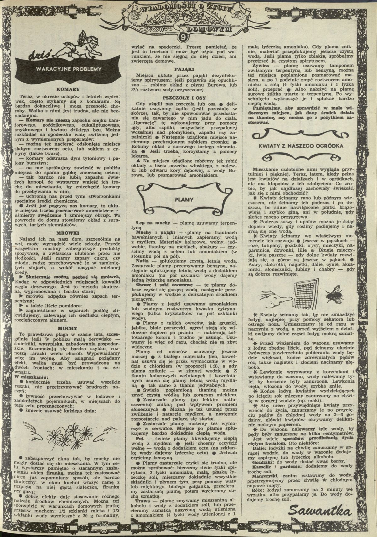 Archiwum / Różności nr 2093 (29/1985) 10/15 Podziel się Tytuł Wiadomości o życiu domowym Autor Sawantka Kategoria Różności Artykuł z numeru 2093 (29/1985) Data wydania 21 lipca 1985 Tagi muchy mrówki komary ogród kwiaty