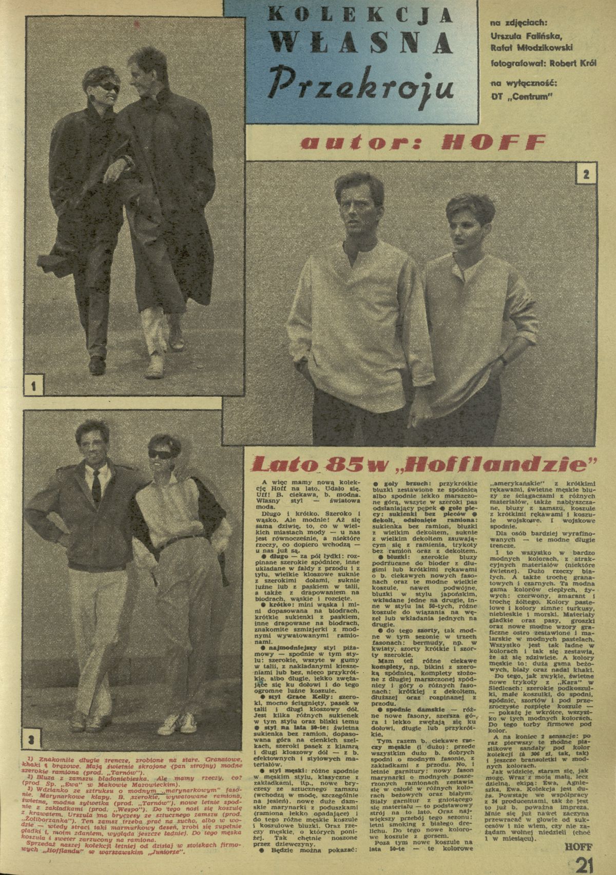 Archiwum / Moda nr 2081 (17/1985) 85465/123969 Podziel się Tytuł Własna kolekcja Przekroju Autor Barbara Hoff Rubryka Moda Artykuł z numeru 2081 (17/1985) Data wydania 28 kwietnia 1985