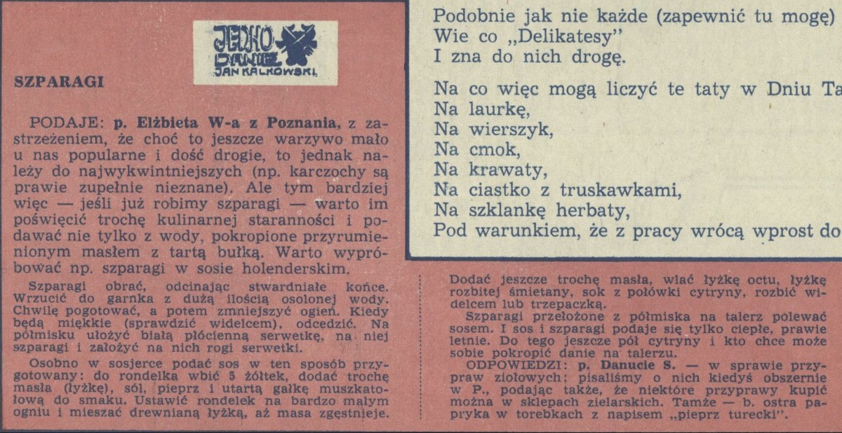 Archiwum / Jedno danie nr 1524 (25/1974) 63893/123969 Podziel się Tytuł Jedno danie Rubryka Jedno danie Artykuł z numeru 1524 (25/1974) Data wydania 23 czerwca 1974
