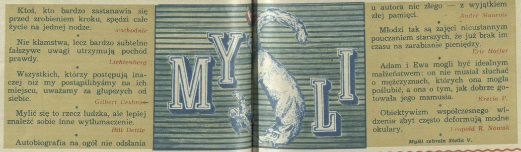 Archiwum / Myśli nr 1526 (27/1974) 19/37 Podziel się Tytuł Myśli Autor Stella Varcaby Rubryka Myśli Artykuł z numeru 1526 (27/1974) Data wydania 7 lipca 1974 Tagi cytaty myśli aforyzmy