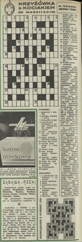 Archiwum / Krzyżówka z kociakiem nr 1527 (28/1974) 20/46 Podziel się Tytuł Krzyżówka z kociakiem Rubryka Krzyżówka z kociakiem Artykuł z numeru 1527 (28/1974) Data wydania 14 lipca 1974
