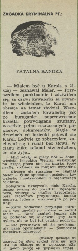 Archiwum / Zagadka kryminalna nr 1535 (36/1974) 59517/123969 Podziel się Tytuł Zagadka kryminalna Rubryka Zagadka kryminalna Artykuł z numeru 1535 (36/1974) Data wydania 8 września 1974
