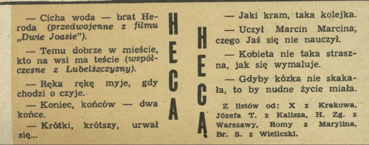 Archiwum / Heca hecą nr 2096 (32/1985) 86035/123969 Podziel się Tytuł Heca hecą Rubryka Heca hecą Artykuł z numeru 2096 (32/1985) Data wydania 11 sierpnia 1985