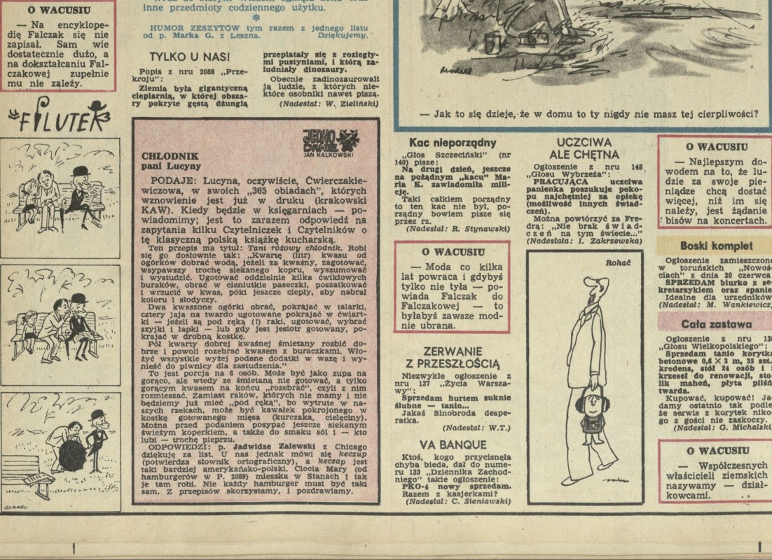 Archiwum / O Wacusiu nr 2096 (32/1985) 410/1180 Podziel się Tytuł O Wacusiu Rubryka O Wacusiu Artykuł z numeru 2096 (32/1985) Data wydania 11 sierpnia 1985 Tagi Wacuś