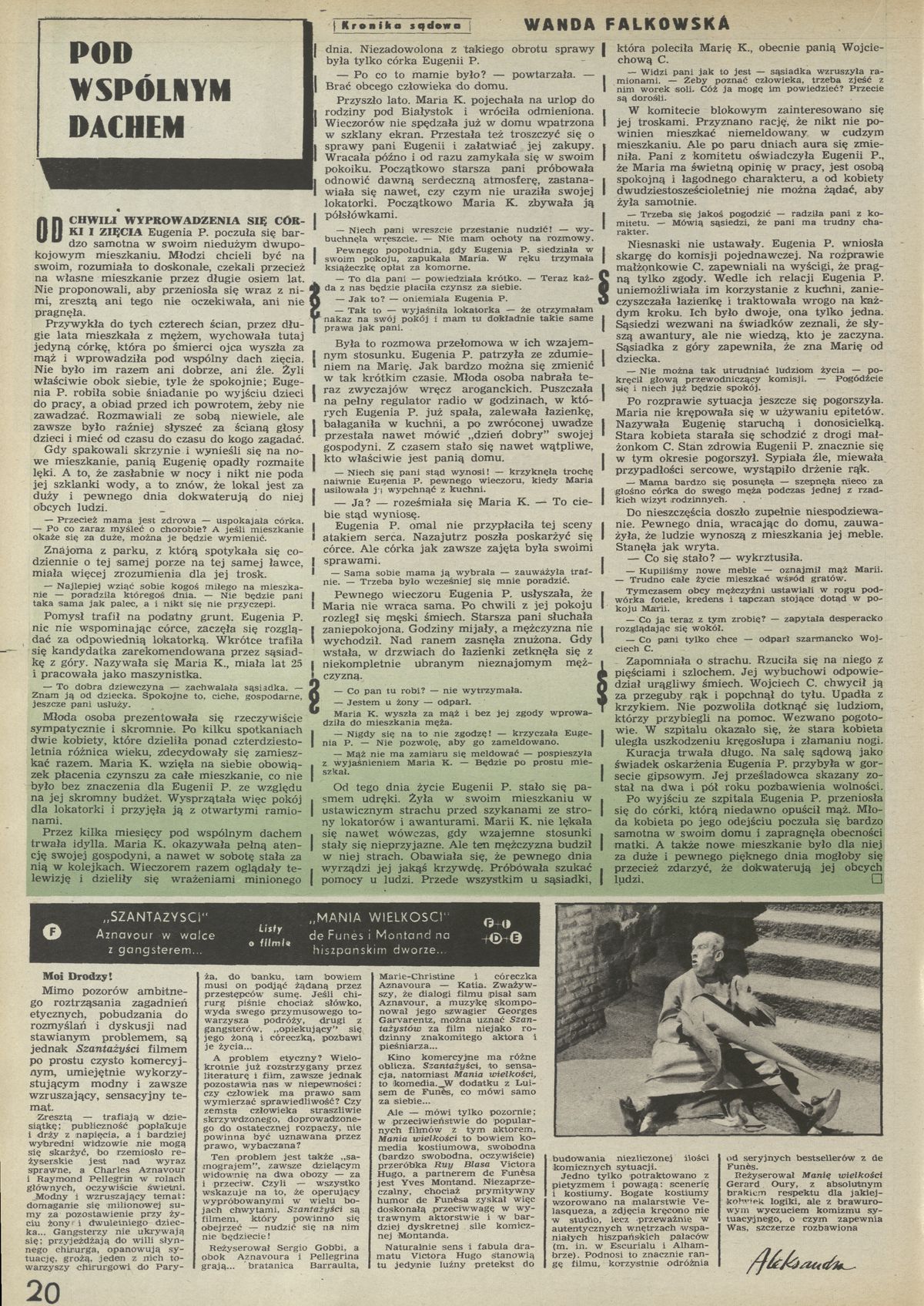 Archiwum / Kronika sądowa nr 1534 (35/1974) 35/45 Podziel się Tytuł Pod wspólnym dachem Autor Wanda Falkowska Rubryka Kronika sądowa Artykuł z numeru 1534 (35/1974) Data wydania 1 września 1974