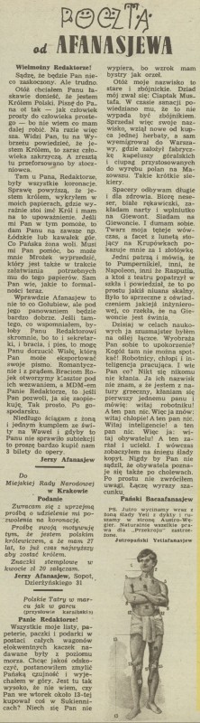 Archiwum / Pocztą od Afanasjewa nr 677-79 (13-15/1958) 04/15 Podziel się Tytuł Pocztą od Afanasjewa Autor Jerzy Afanasjew Rubryka Pocztą od Afanasjewa Artykuł z numeru 677-79 (13/1958) Data wydania 5 kwietnia 1958