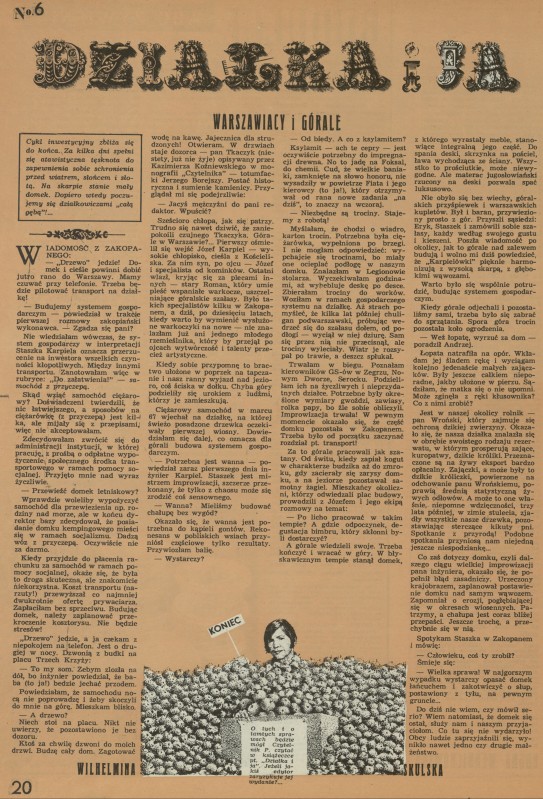 Archiwum / Opowiadanie nr 1621 (18/1976) 175/246 Podziel się Tytuł Działka Autor Skulska Wilelmina Kategoria Opowiadanie Artykuł z numeru 1621 (18/1976) Data wydania 2 maja 1976 Tagi Warszawiak góral krótkie historie opowiadanie