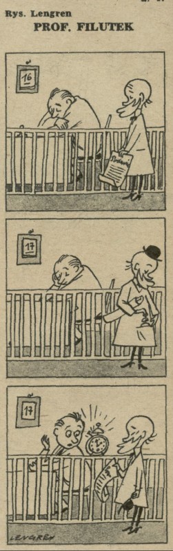 Archiwum / Profesor Filutek nr 312 (14/1951) 26/85 Podziel się Tytuł Prof. Filutek Autor Zbigniew Lengren Rubryka Profesor Filutek Artykuł z numeru 312 (14/1951) Data wydania 1 kwietnia 1951 Tagi żart rysunkowy budzik