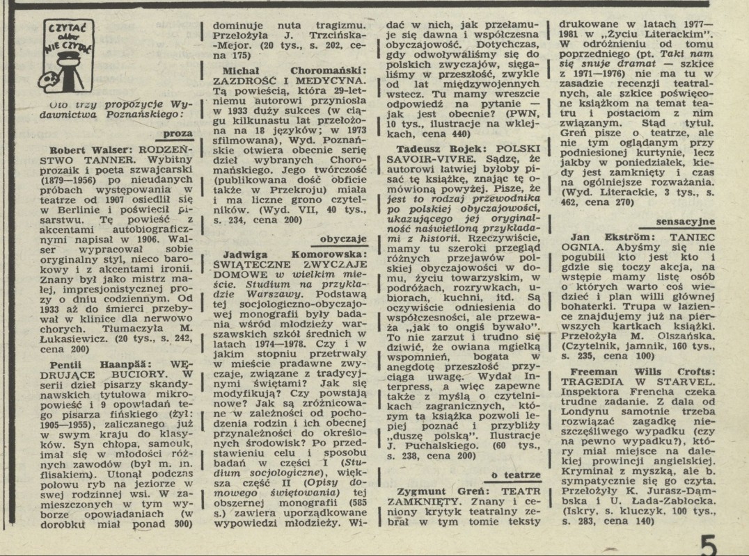 Archiwum / Czytać albo nie czytać? nr 2061 (50/1984) 84708/123969 Podziel się Tytuł Czytać albo nie czytać? Rubryka Czytać albo nie czytać? Artykuł z numeru 2061 (50/1984) Data wydania 9 grudnia 1984