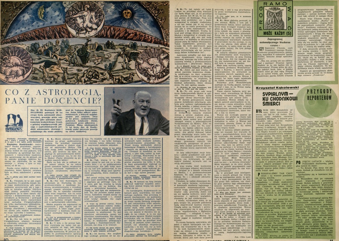 Archiwum / Rozmowy „Przekroju” nr 1554 (03/1975) 65384/123969 Podziel się Tytuł Co z astrologią, panie docencie? Autor Dorota Terakowska Rubryka Rozmowy „Przekroju” Artykuł z numeru 1554 (3/1975) Data wydania 19 stycznia 1975