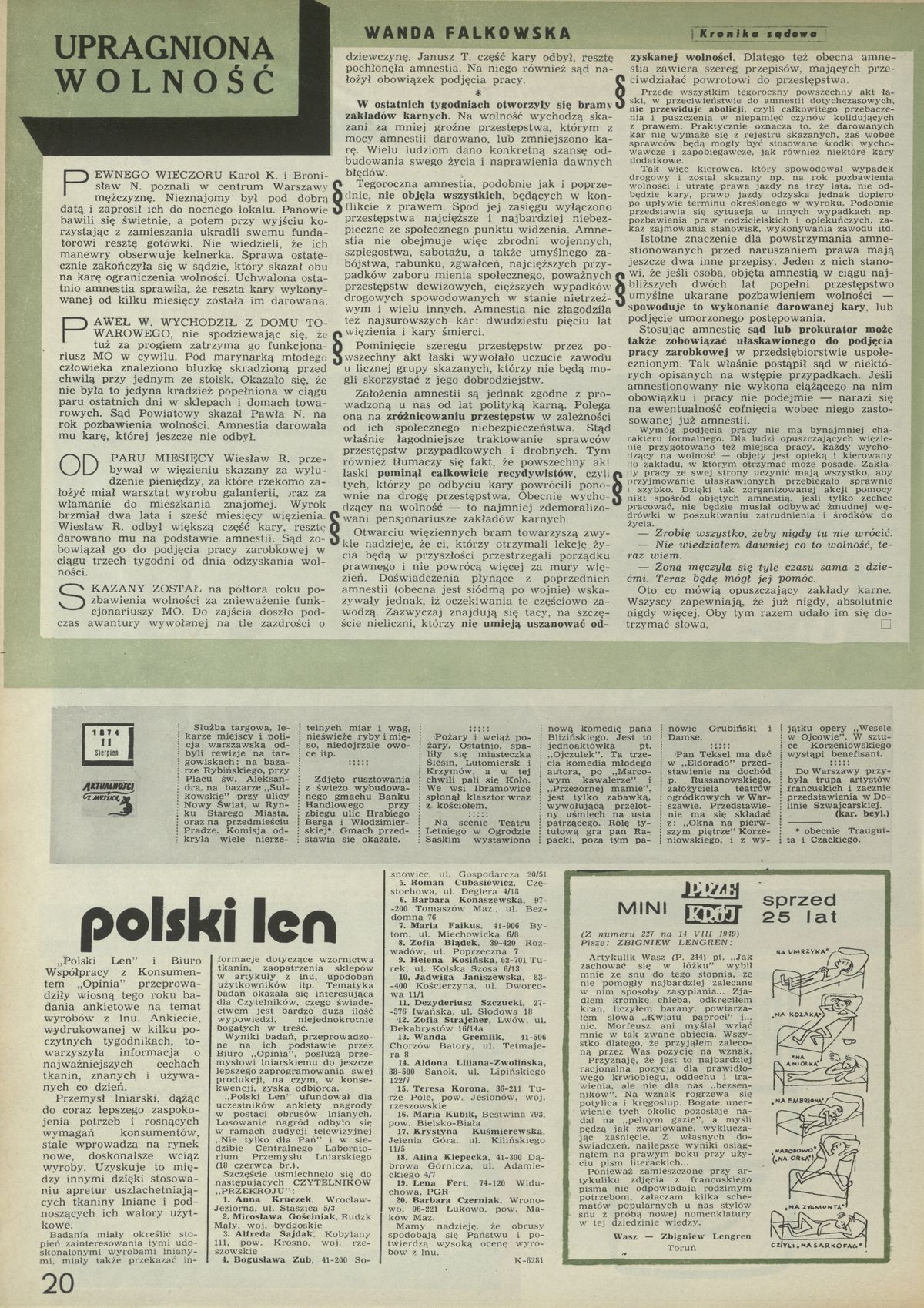 Archiwum / Ankieta nr 1531 (32/1974) 64262/123969 Podziel się Tytuł Polski len Rubryka Ankieta Artykuł z numeru 1531 (32/1974) Data wydania 11 sierpnia 1974