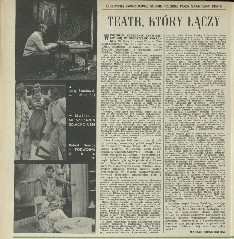 Archiwum / Teatr nr 1538 (39/1974) 938/1291 Podziel się Tytuł Teatr, który łączy Autor Marian Sienkiewicz Rubryka Teatr Artykuł z numeru 1538 (39/1974) Data wydania 29 września 1974 Tagi teatr cieszyn