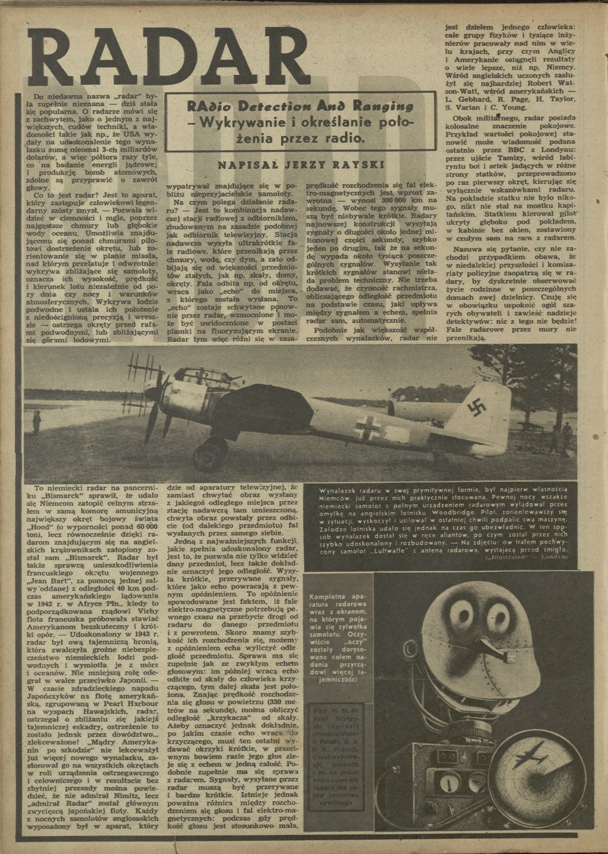 Archiwum / Nauka nr 46 (08/1946) 18/103 Podziel się Tytuł Radar - RAdio Detection And Ranging -] wykrywanie i określanie położenia przez radio Autor Jerzy Rayski Kategoria Nauka Artykuł z numeru 46 (8/1946) Data wydania 24 lutego 1946
