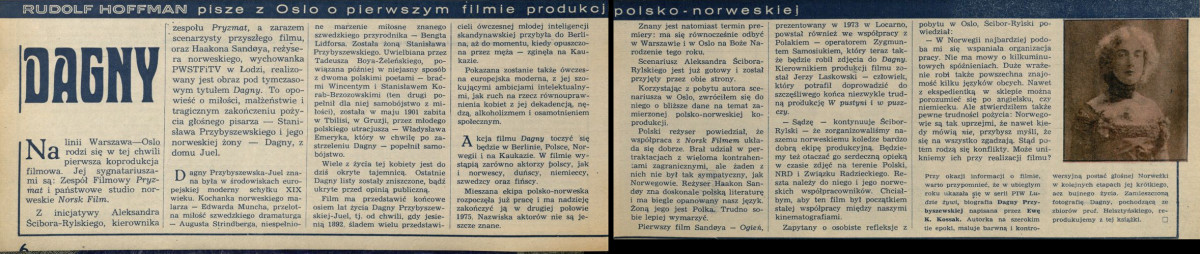 Archiwum / Film nr 1557 (06/1975) 2/5 Podziel się Tytuł Dagny Autor Rudolf Hoffman Rubryka Film Artykuł z numeru 1557 (6/1975) Data wydania 9 lutego 1975 Tagi Dagny Juel Przybyszewska